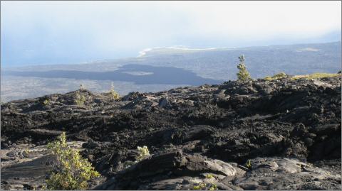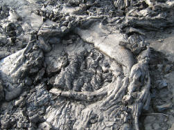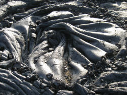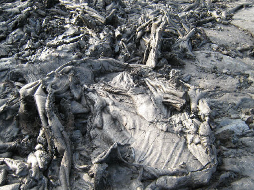 Auf Hawai'i (namentlich Big Island), da ist noch vor zwei Jahrzehnten ein ganzes Dorf von der glühenden Walze der Lava überrannt worden. Wir können noch die Verkehrsschilder oder Autodächer aus der Erstarrung herausragen sehen.