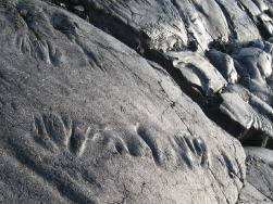 Und nun, bei aller Zerstörung, Unabänderlichkeit und allem Ausgeliefert-sein werden wir Zeuge einer sich offenbarenden Ästhetik des Grauens (wenn auch dieser Ausdruck vielleicht etwas zu reißerisch ist), die sich jenseits des Gedankens von Ödnis erst dann einstellt, wenn man den Blick auf das So-ist-es richtet, sich auf das Ungeheure begibt, die tragfähige Erstarrung für ein Suchen nach diesem Gestaltetsein nutzt und eine unglaubliche Vielfalt an dieser Gewalt innewohnendem Formenreichtum entdeckt. Nur zu Fuß ist das zu erleben, diese Wüste aus geschmolzener Erdsubstanz, aus Feuer und giftigen Gasen...