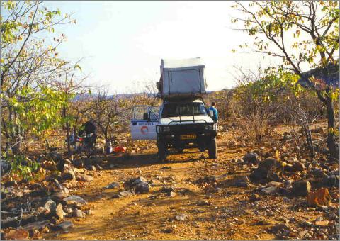 Nur, wie begegnet man ausfallenden Bremsen, ungeahnten Steilstrecken abwärts wie aufwärts in Sand oder scharfkantigem Felsgrund, wie einem Reifenschaden an der Skeleton-Küste (wie beruhigend!), bei dem sich die Reparaturkurbel im Niemandsland als die falsche erweist, wie verhält man sich, wenn durch Rüttelmarathon die gesamte Elektronik des Fahrzeuges ausfällt oder die Blattfedern hinten rechts brechen, die Karten sich aufgrund des unbestechlichen GPS als falsch erweisen oder wenn man nachts wegen einer plötzlich auftretenden Diarrhoe vom Zelt auf dem Autodach herunter in hyänenunsichere Nacht muß, nur mit schnell gegriffenem Spaten bewaffnet...